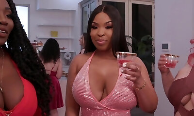 Black BBW sluts fuck with playthings and a strap on hard-core