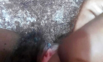 Brownglimmer Lubricates up Her Hairy Honeypot and Rubs on Her Thick Clit