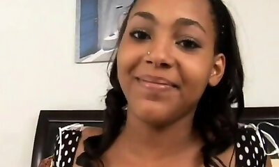 Slim and small boobed ebony likes cum all over her beautiful young face