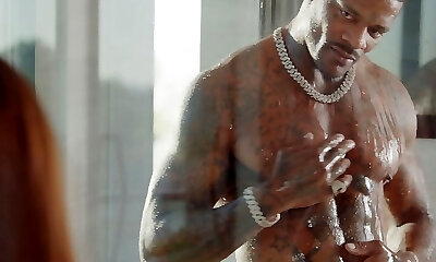 Red haired seductress Laney Grey gives dark-hued man the rail of his life