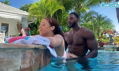 Rae Lil Dark-hued comes to the beach to have Interracial with Black Stranger