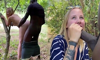 Curious blond goddess wife gives deep throat, hairy pussy, pissing in cup, husband taking a pee, sucking black cock