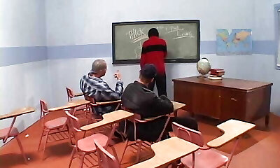 Hot tits ebony chick in classroom fellating and fucking teacher's black dong