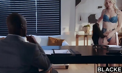 Dark-hued guy hires a white secretary and pounds her tight pussy