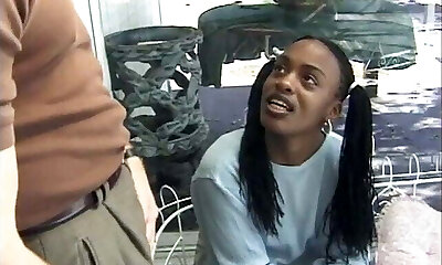 Slim and small boobed ebony likes cum all over her beautiful young face